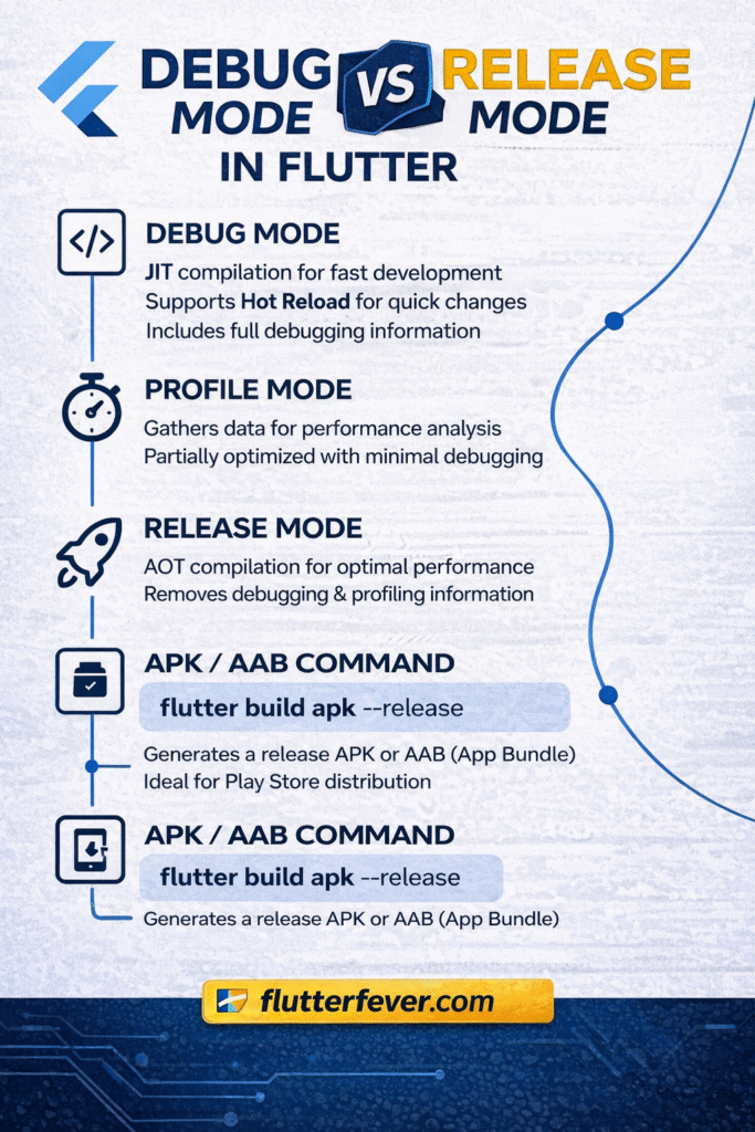 Understanding Debug vs Release Mode in Flutter is critical because performance behavior changes significantly.