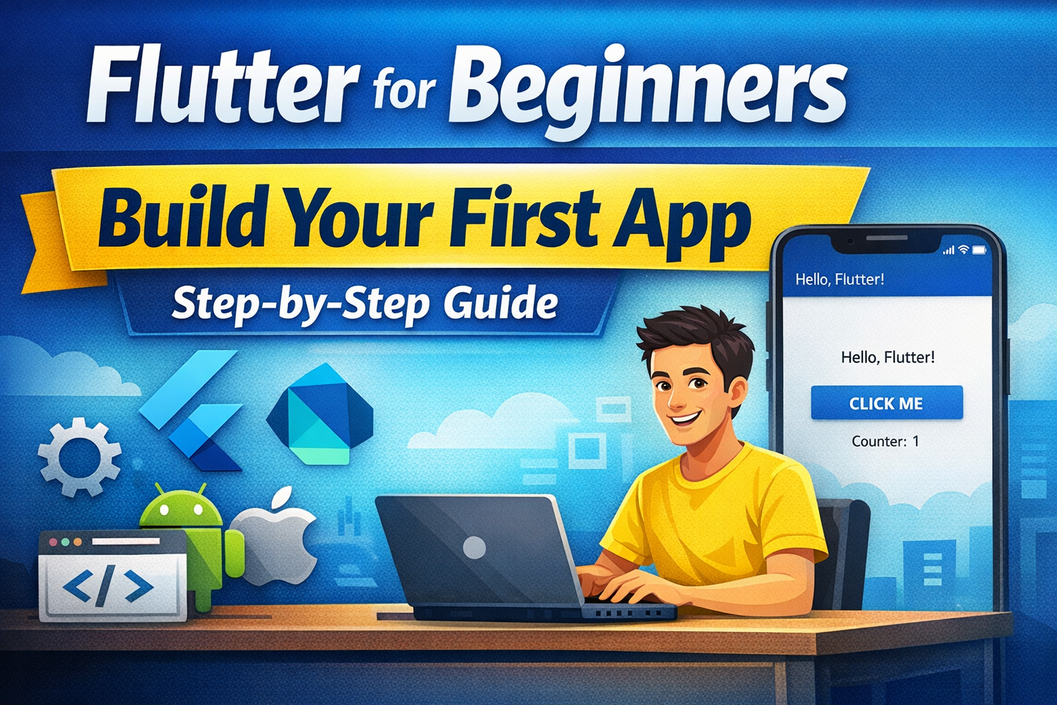 This detailed beginner-friendly guide will help you understand what Flutter is, how to set up your system, how to create your first Flutter app, how the project structure works, how widgets behave, how hot reload helps, and how to use Flutter’s learning resources and codelabs.