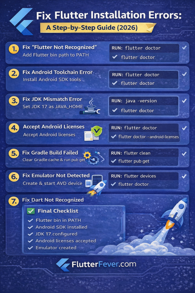 Instead of random troubleshooting, this guide provides systematic Flutter install error fixes.