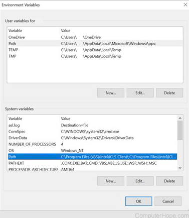 1. Under User Variables, select Path