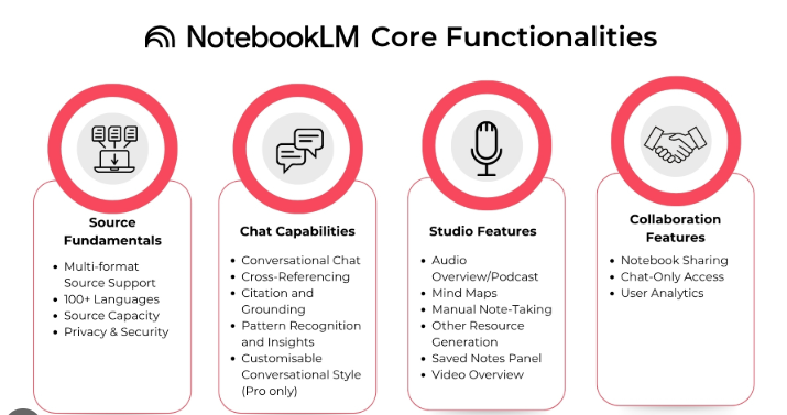 NotebookLM can generate Audio Overviews — “deep dive” AI-host discussions summarizing your sources.